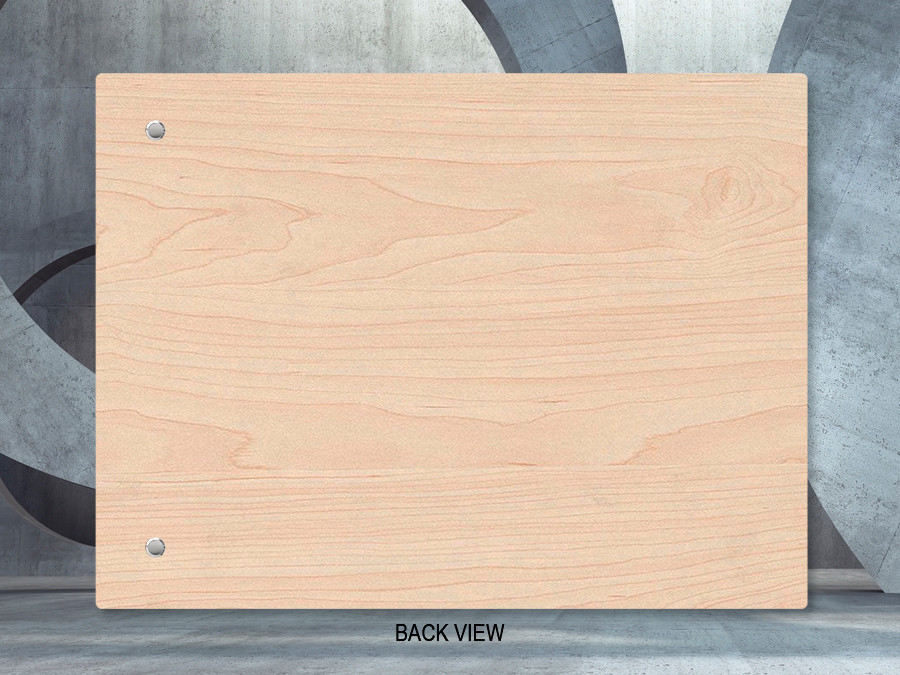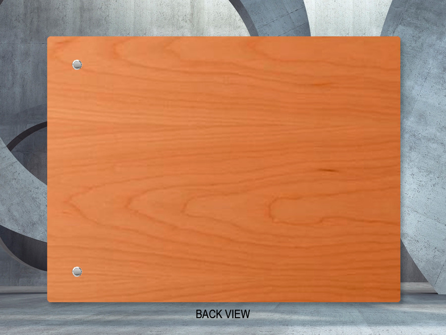 Choose Cherry or Maple (1/8 wood veneer with MDF core) and your hinge color (vegan leather), then add your details in the customization area. A proof will be sent to you for approval prior to beginning your order.