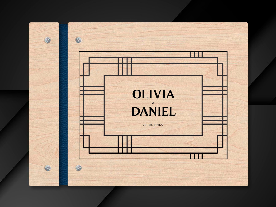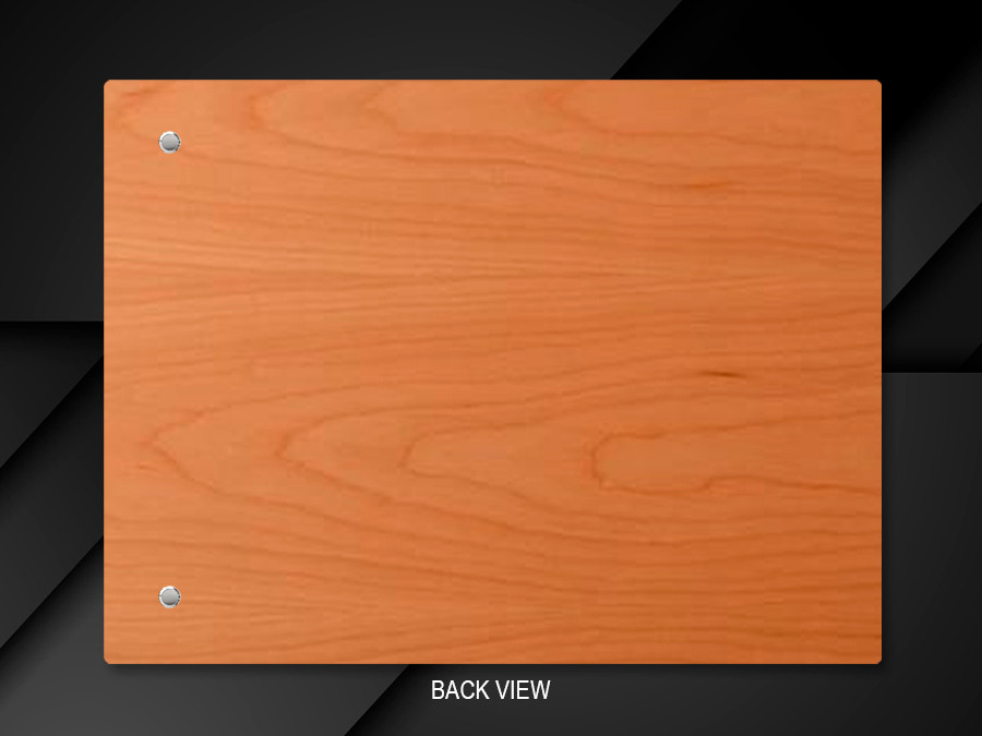 Choose Cherry or Maple (1/8 wood veneer with MDF core) and your hinge color (vegan leather), then add your details in the customization area. A proof will be sent to you for approval prior to beginning your order.