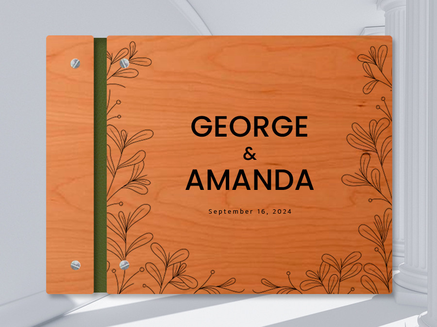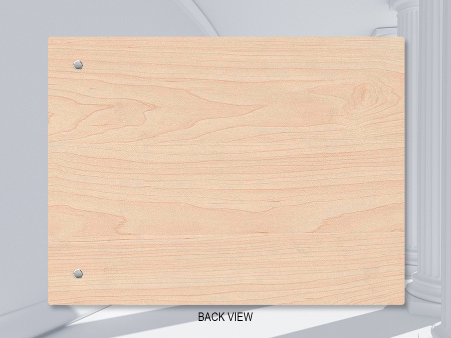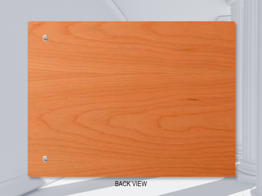Choose Cherry or Maple (1/8 wood veneer with MDF core) and your hinge color (vegan leather), then add your details in the customization area. A proof will be sent to you for approval prior to beginning your order.