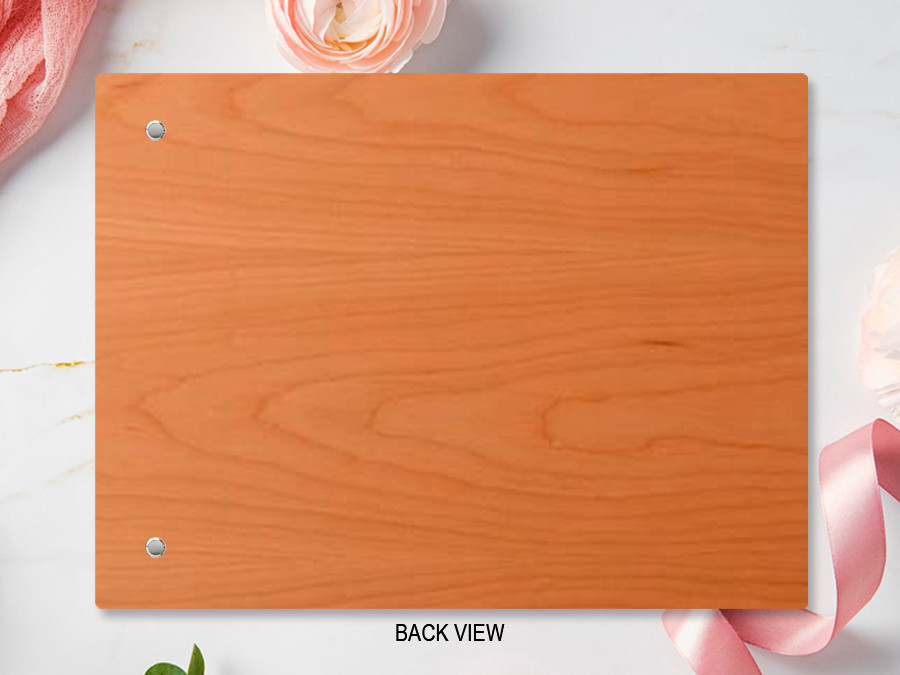 Choose Cherry or Maple (1/8 wood veneer with MDF core) and your hinge color (vegan leather), then add your details in the customization area. A proof will be sent to you for approval prior to beginning your order.