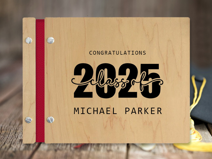 This 9 x 12 inch wood with vegan leather live hinge custom book is laser engraved with your unique details, making it a one-of-a-kind keepsake. Ideal for creating a Polaroid-style photo albums.